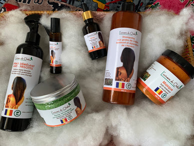 La gamme Moundou est conçue pour les cheveux très cassant ayant subit une importante chute de cheveux, trous, alopécie. Elle reconstruit complètement et instantanément la fibre capillaire et donne une pousse significative. Public concerné: enfants/ Adultes ( a partir de 12ans)